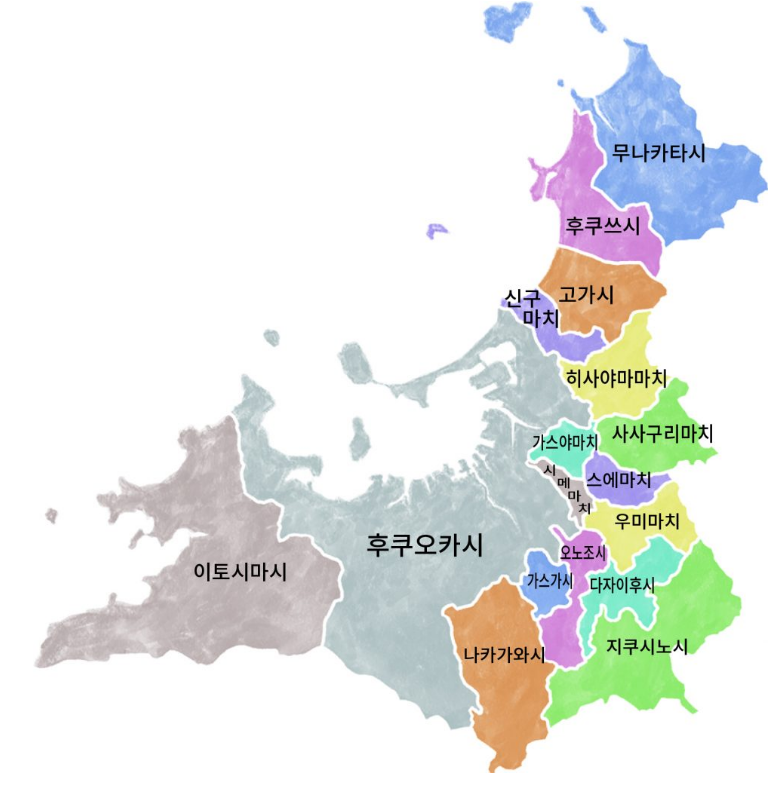 후쿠오카는 일본의 4개 주요 섬 중 가장 남쪽에 있는 규슈 섬의 북쪽 해안에 위치한 도시입니다.